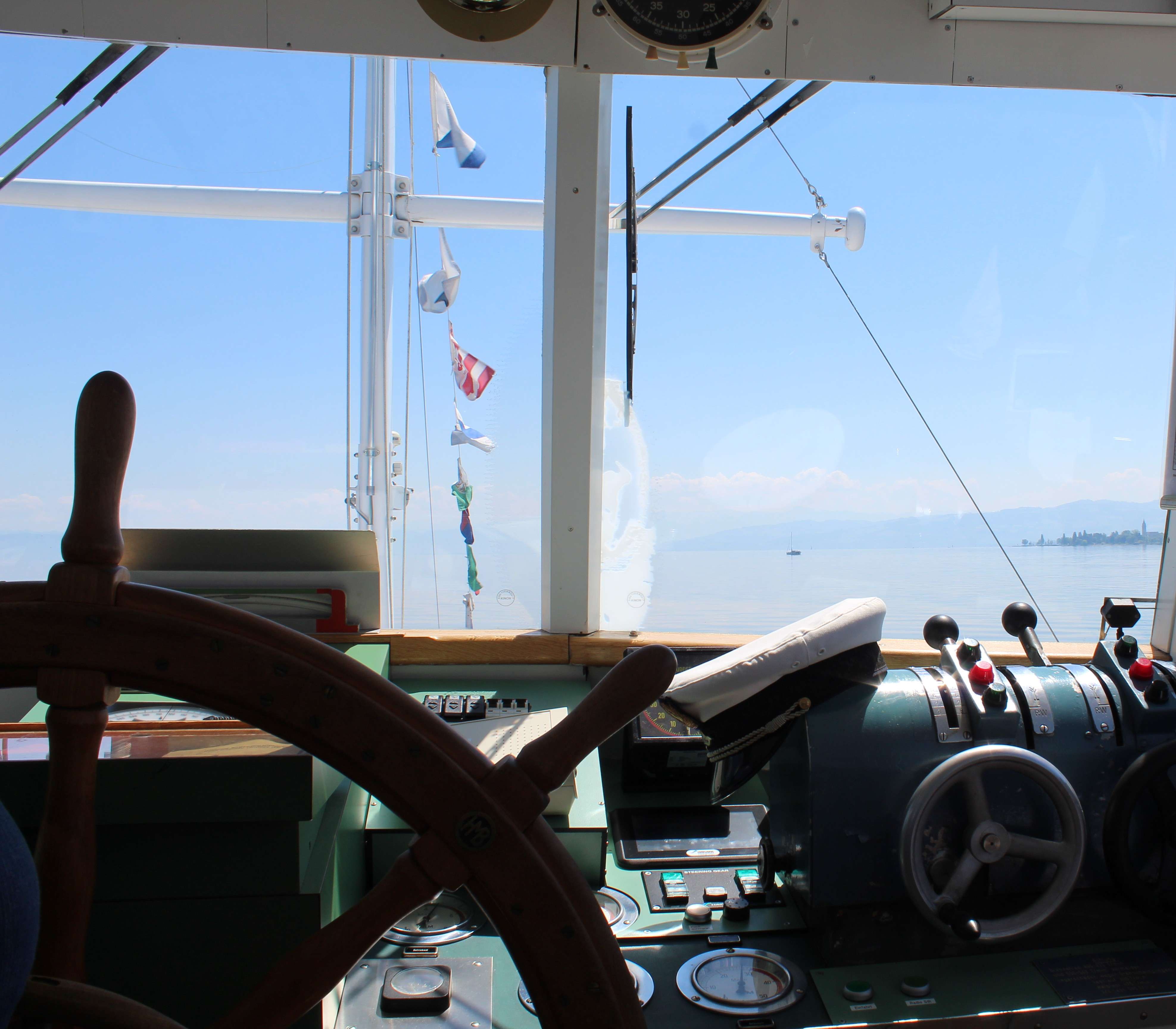 So erkundeten wir das Schiff so lange, bis wir den Captain bei seiner Arbeit kennenlernten und während dem Lenken des Steuerrades gingen Bubenträume in Erfüllung. Wir hielten viele schöne Momente fest, knipsten Fotos wie Supermodels, tankten Sonne an der frischen Seeluft, liessen uns den Wind durch die Haare strömen und entdeckten sogar den Zeppelin am Horizont. Mit Herzensfreude über den vergangenen Ausflug machten wir uns wieder auf den Rückweg und denken noch heute immer wieder an das Highlight dieses Frühsommers zurück.